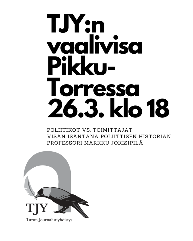 Tervetuloa Turun Journalistiyhdistyksen vaalivisailuun ke 26.3. klo 18 Pikku-Torreen (Yliopistonkatu 30, Turku)! Kevään kuumimmassa mittelössä vastakkain asettuvat turkulaiset toimittajat ja