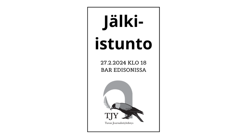Kutsu Turun Journalistiyhdistyksen sääntömääräiseen vuosikokoukseen Toivotamme jäsenemme tervetulleiksi Turun Journalistiyhdistyksen vuosikokoukseen torstaina 14.3.2024 klo 18 ravintola Gustavoon osoitteeseen Linnankatu 1,